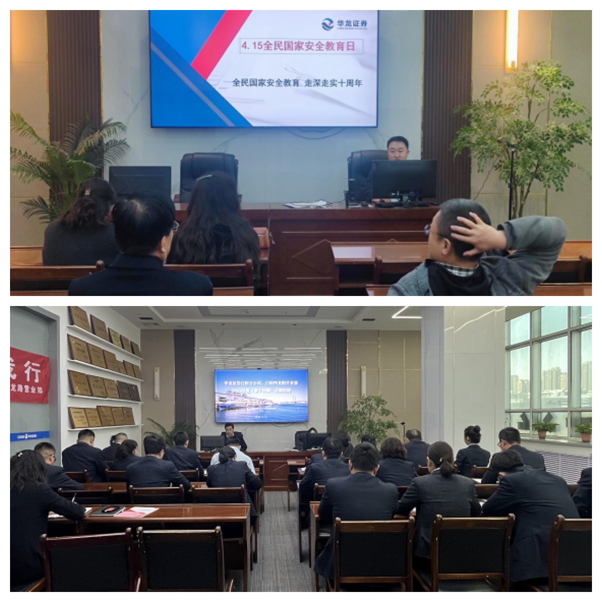 一、通過(guò)營(yíng)業(yè)部門頭跑馬燈、滾動(dòng)屏連續(xù)播放“全民國(guó)家安全教育 走深走實(shí)十周年”主題宣傳提示標(biāo)語(yǔ);在營(yíng)業(yè)部二樓大廳投教園地張貼相關(guān)宣傳海報(bào)及宣傳資料;在電視機(jī)大屏投放4.15宣傳內(nèi)容,并針對(duì)前來(lái)現(xiàn)場(chǎng)辦理相關(guān)業(yè)務(wù)的投資者發(fā)放相關(guān)宣傳彩頁(yè)供其查閱。