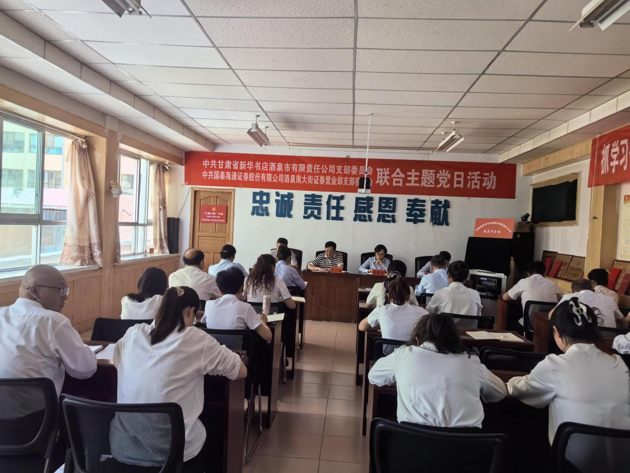 為深入學(xué)習(xí)貫徹黨的二十大精神,加強(qiáng)企業(yè)黨組織間的交流合作,2025年5月19日,中共國泰海通證券股份有限公司酒泉南大街證券營業(yè)部支部委員會與中共甘肅省新華書店酒泉市有限責(zé)任公司支部委員會聯(lián)合開展了“黨建引領(lǐng)聚合力 聯(lián)學(xué)共建促發(fā)展”主題黨日活動。