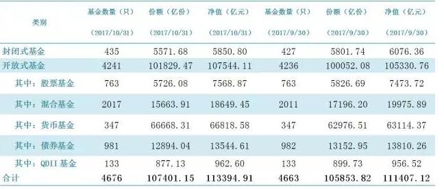 公募基金市場數(shù)據(2017年10月)