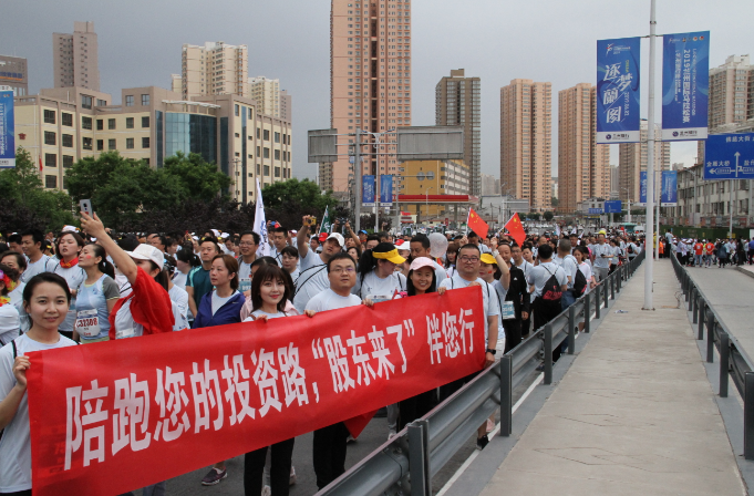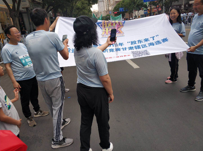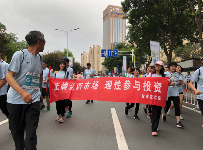 2019年6月2日,藍(lán)天白云之下,草木欣然;黃河風(fēng)情線上,人頭攢動(dòng)。一年一度的蘭州國(guó)際馬拉松賽于上午7時(shí)30分鳴槍開(kāi)跑,賽事吸引了來(lái)自19個(gè)國(guó)家及地區(qū)的40007名選手參賽。這是整個(gè)城市的盛大節(jié)日,起跑處國(guó)歌陣陣,彩旗飄飄,借助“激情馬拉松,全民嘉年華”的火熱氛圍,甘肅證監(jiān)局、甘肅證券期貨業(yè)協(xié)會(huì)攜手轄區(qū)法人機(jī)構(gòu)華龍證券股份有限公司現(xiàn)場(chǎng)助力,拉起“陪跑您的投資路,‘股東來(lái)了’伴您行”條幅和繪有比賽圖標(biāo)、參賽二維碼的參賽展布,為2019“股東來(lái)了”投資者權(quán)益知識(shí)競(jìng)賽宣傳造勢(shì),成為比賽起點(diǎn)又一道亮麗的風(fēng)景線。