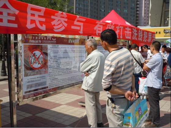 2011年8月23日至25日,協(xié)會聯(lián)合國信證券蘭州北濱河路營業(yè)部,在位于市中心的東方紅廣場面向廣大市民開展反洗錢宣傳活動。期間,協(xié)會工作人員和國信證券員工向市民細致講解反洗錢的概念、意義,提醒市民朋友多關注身邊經濟活動。