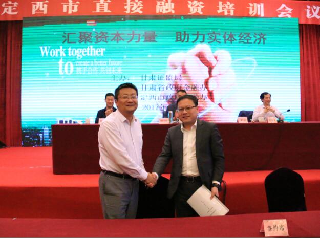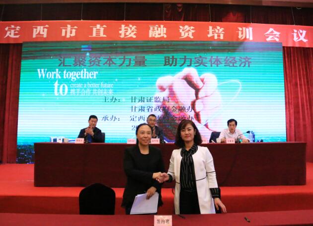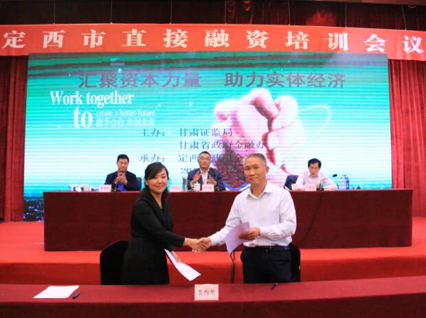 培訓(xùn)會上,定西市政府與甘肅證監(jiān)局簽署了“合作備忘錄”,達(dá)成合作意向的縣區(qū)政府及企業(yè)與券商簽訂了合作協(xié)議。